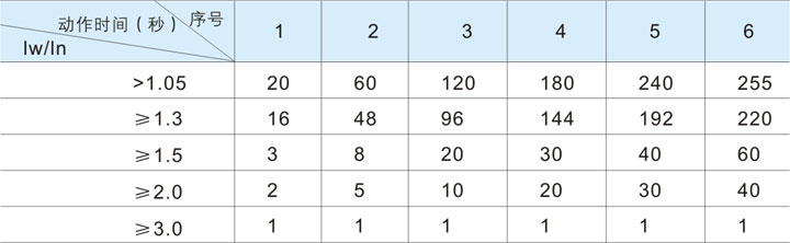注:表中lw為工作電流,ln為額定動作電流。